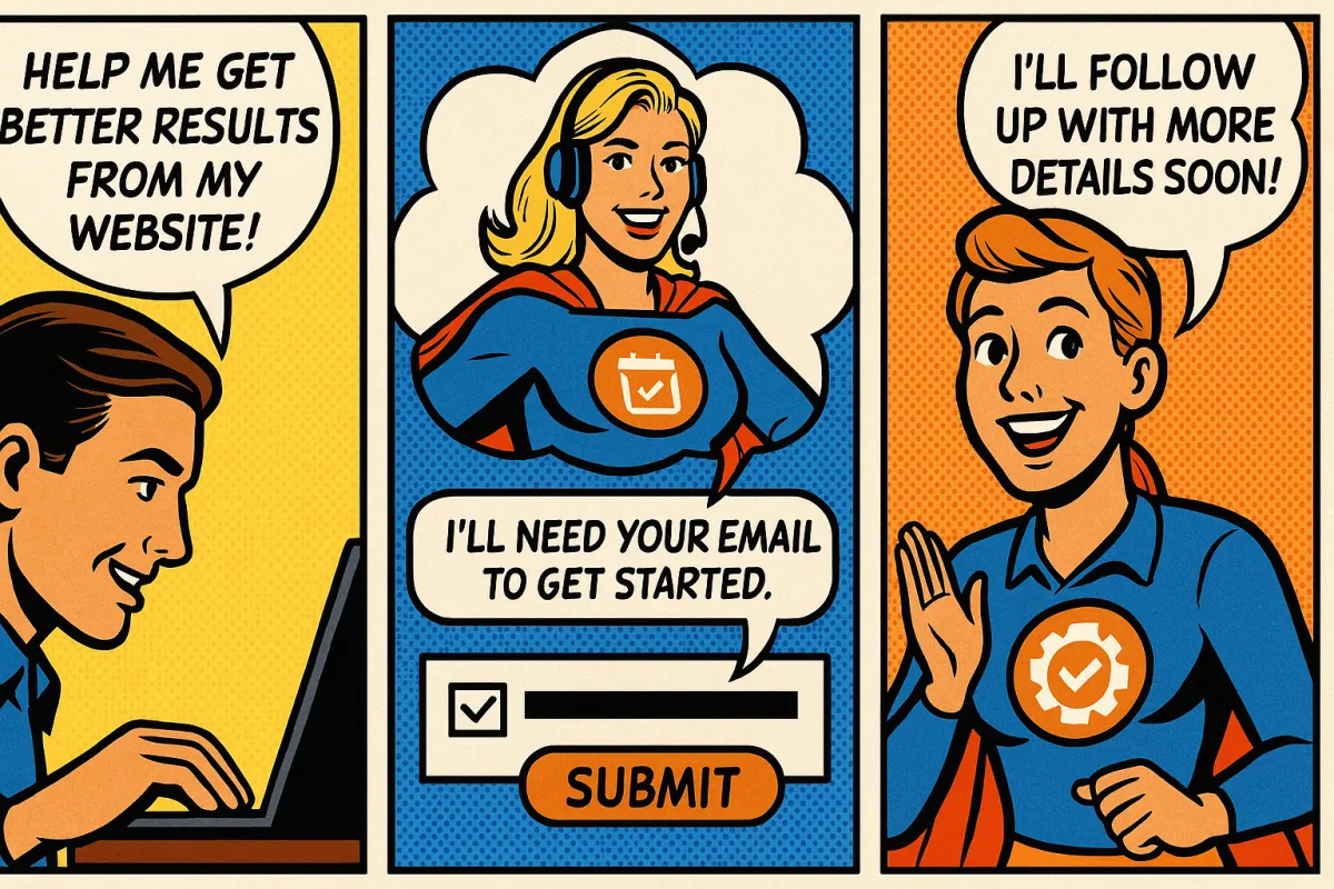 Turn your site into a 24/7 multi-lingual salesperson that knows your business, qualifies, collects info, and books time for you.